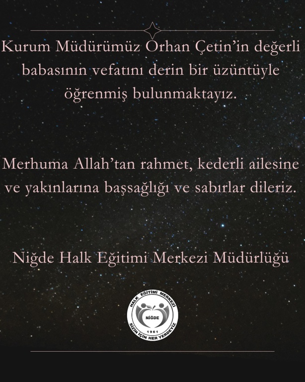 Niğde Halk Eğitimi Merkezi ailesi olarak büyük bir üzüntü içerisindeyiz.